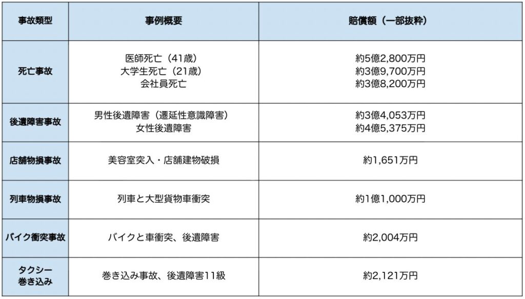 また例えば自分の運転が原因で大型トラックが急ブレーキを踏み、大量の精密機器が損傷した場合なども対物の賠償金は極めて高額となる可能性があります。