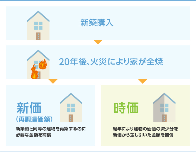 持ち家の保険金額をいくらに設定するか決めるためには『新価』と『時価』という2つの建物評価基準について知っておく必要があります。