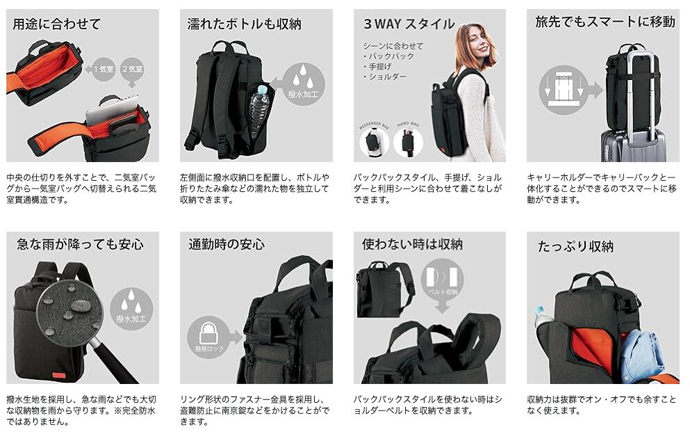 『MacBookAirを収納したMOFTのノートパソコンケース』を入れて持ち運んでいるリュックがこちら。