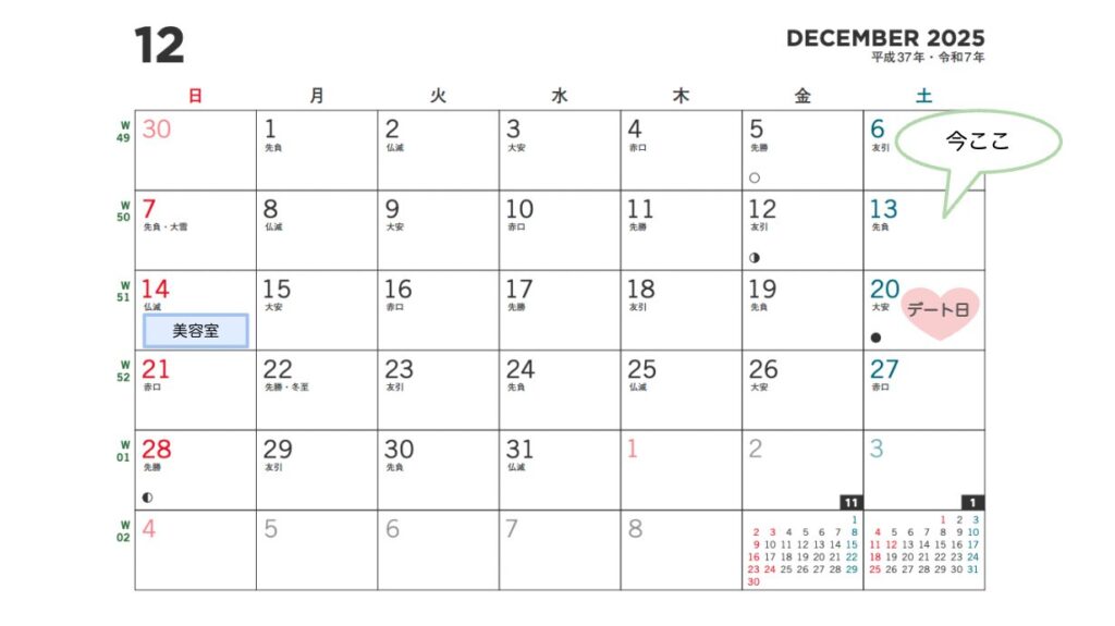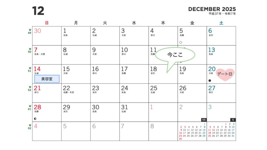 デート場所の確保や身だしなみの整えといったタスクを余裕を持ってこなしたいのならば、デートの2週間前には行動を開始しましょう。