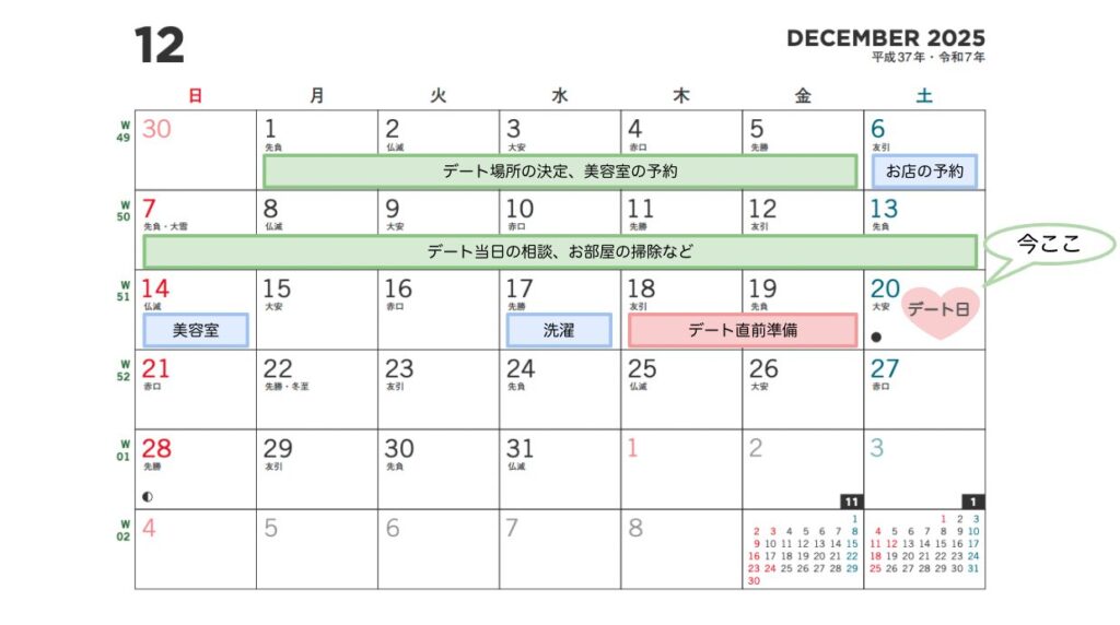 ということは、デートの日程はそれよりも前に決めておく必要がありますね。