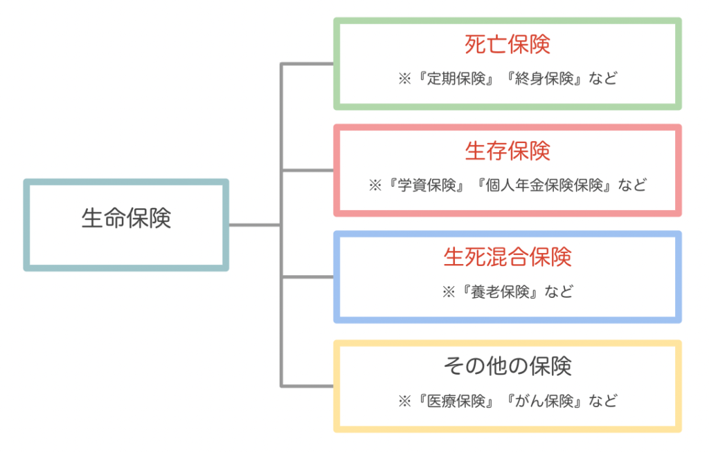 生命保険は保証を受けることができる期間や保険金の受取方法によって大きく次の4つに分けることができます。