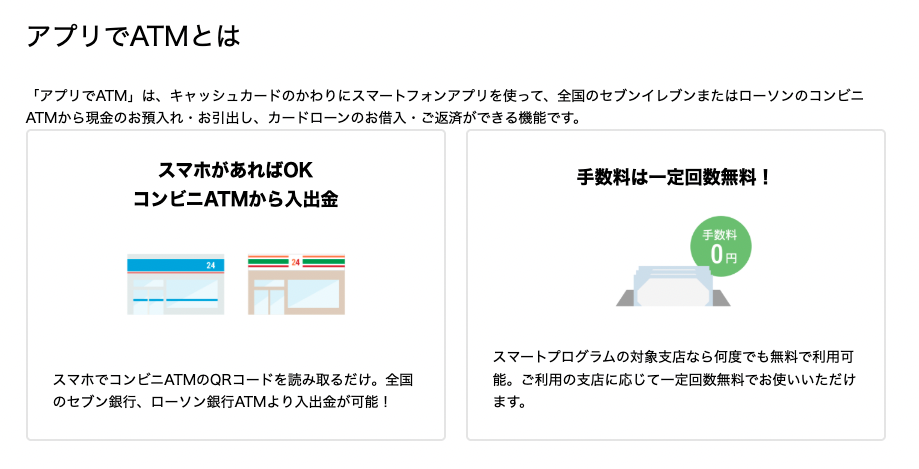 またATMからの入出金もキャッシュカードではなくアプリを使用して行うことができます(『アプリでATM』機能)。
